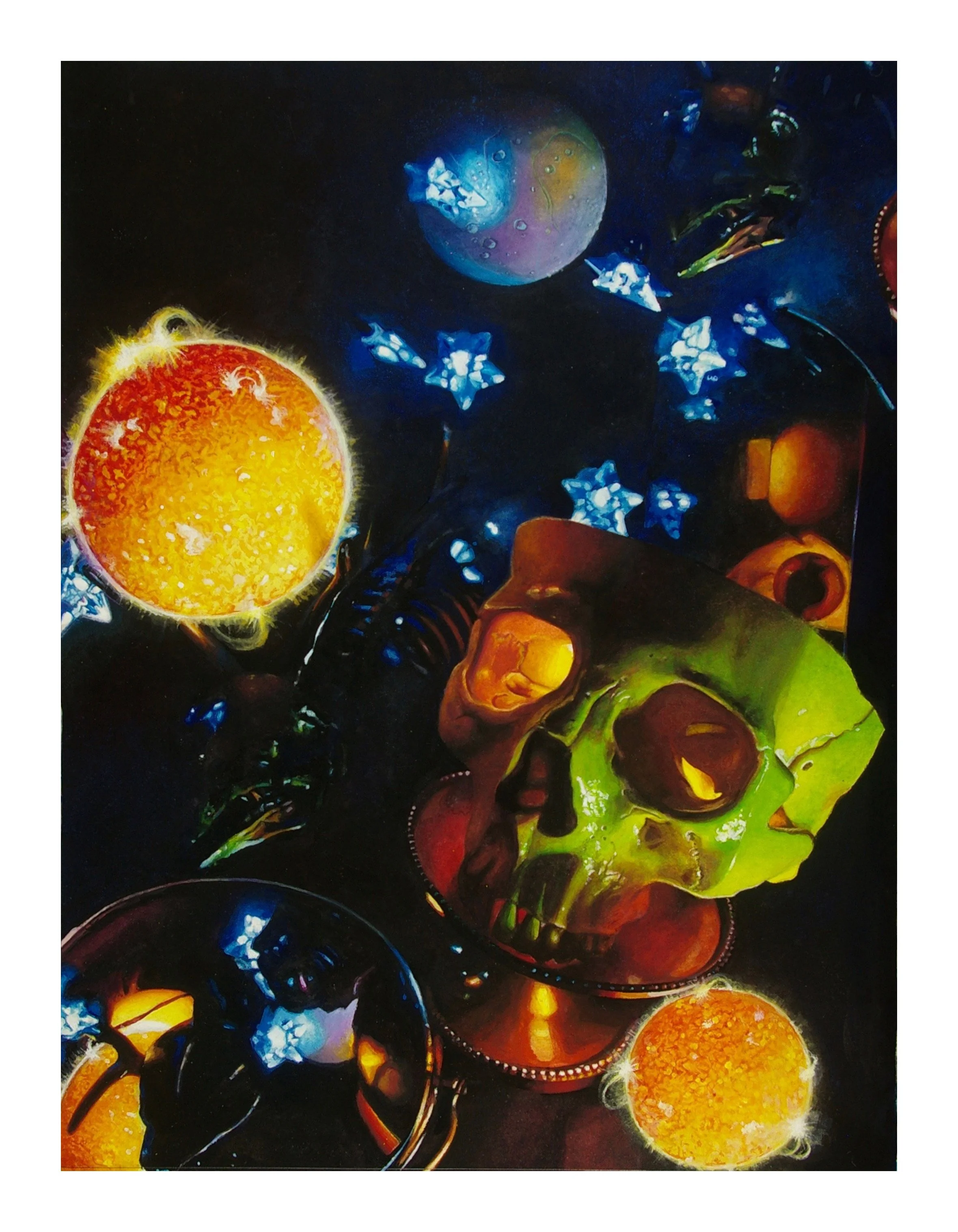 Still life as a genre probes the weirdness of existing as a thing observing other things. I cannot deny allegations of symbolism in these pseudo-figural tableaus. They are riddles as much as they are psychedelic explorations of light and color.