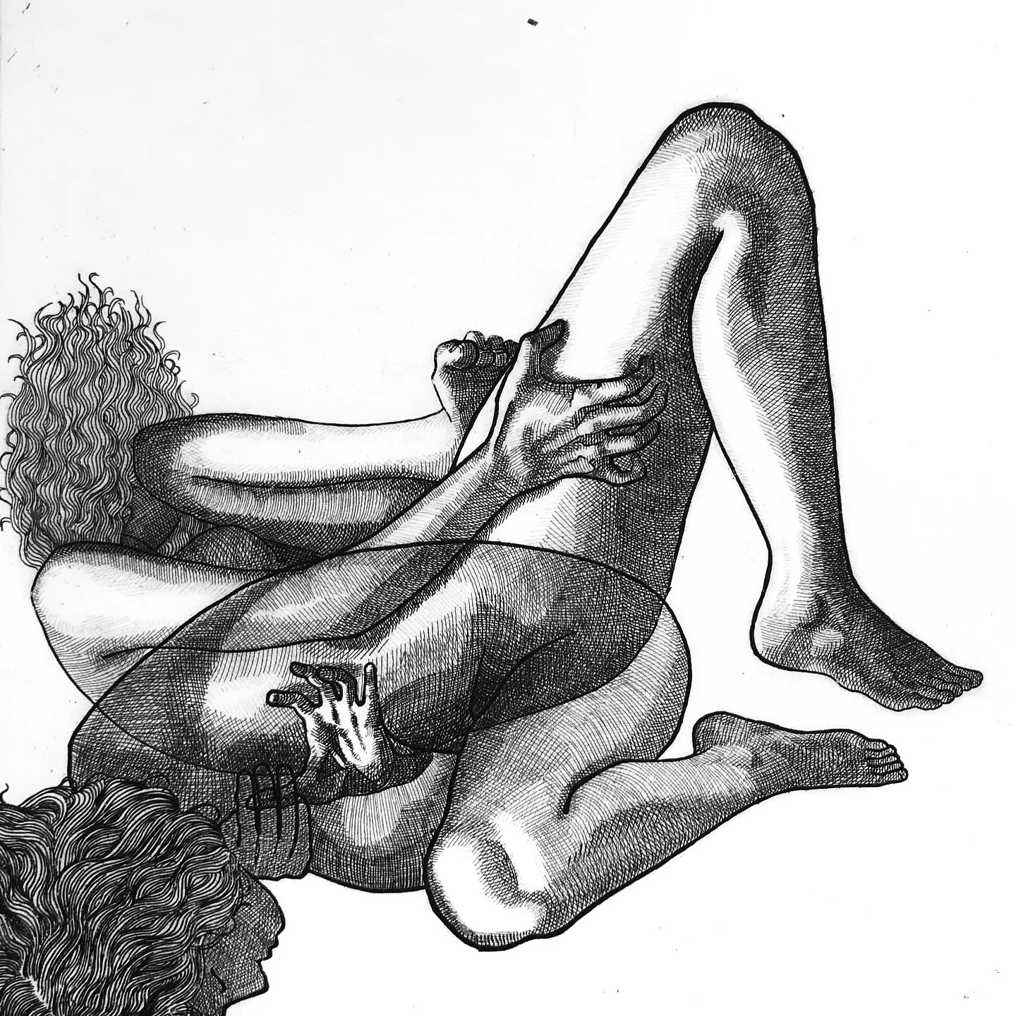 Contortions, photo etching from drawing on glass, image size 8.75" x 3.75," paper size 15" by 11," edition of 14, 2023